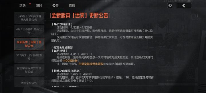 4月10日起,诡雾山谷模式中将限时开启全新隐藏区域——阈限空间。请先锋们在山谷中谨慎行动,敬请期待!