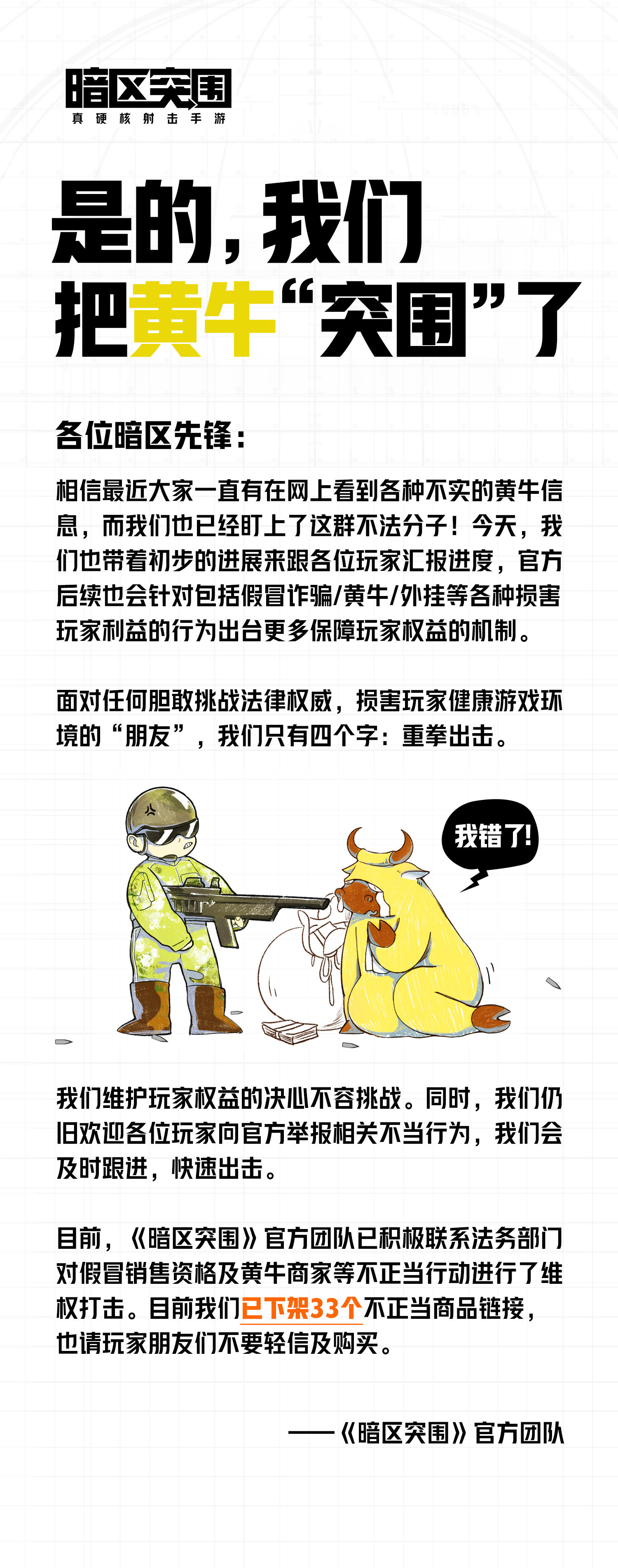 各位暗区先锋们:目前服务器承载达到上限,部分先锋可能会遇到新手教程关出现错误提示,我们正在紧急处理修复中。已经成功注册角色进入新手教程关卡即视为抢号成功,不必担心资格消失。异常报错和卡死问题先锋们也可以使用以下方法尝试解决:1.新手教程关卡住时,关闭游戏进程并重启2.无法选择农场地图时,直接点击“匹配”尝试进入如遇其他异常问题,请通过问卷反馈,研发团队将定期逐一查看。紧急问题也可联系