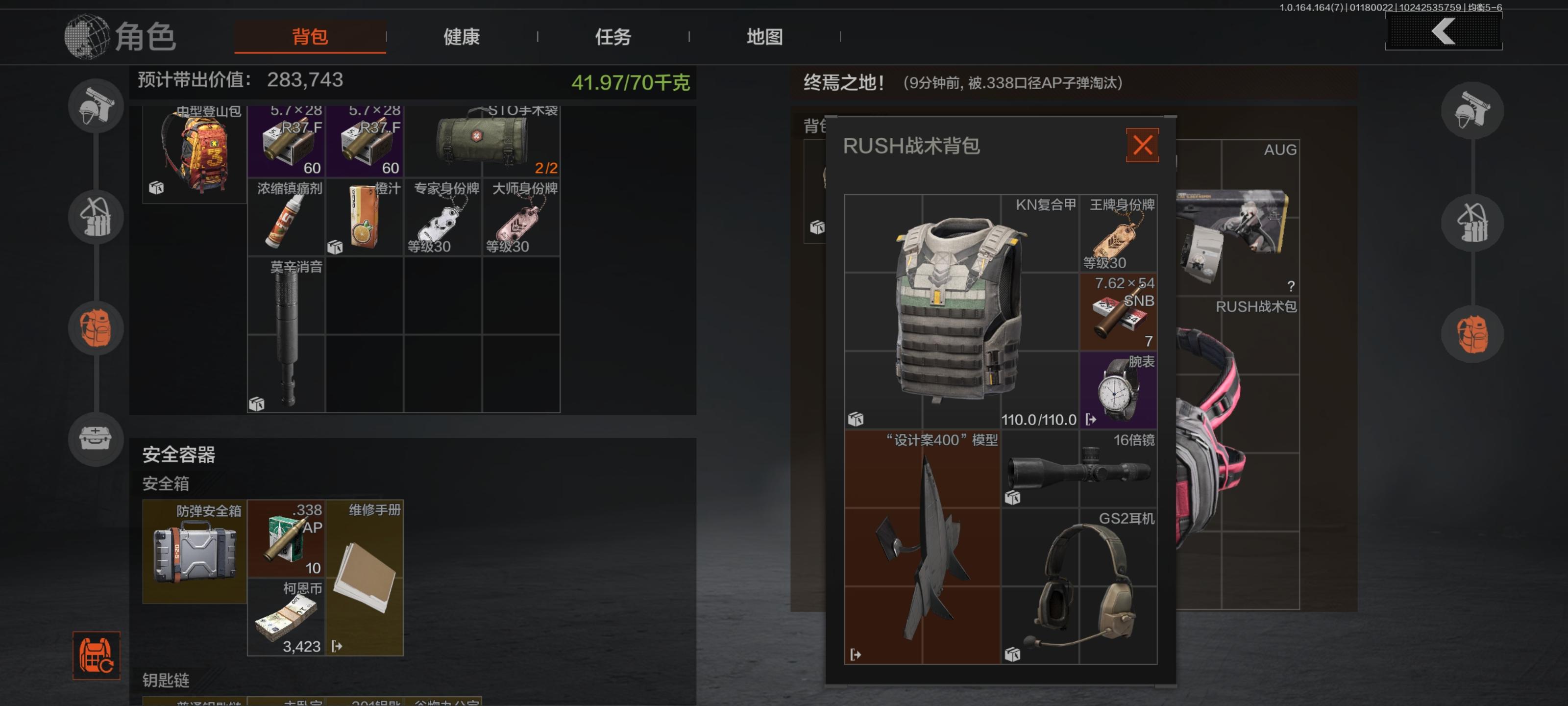 前面打要塞,打完3个又复活过来打,遭不住。发现还有没声纹没有复活的老农场,第一把直接就出了个茶壶,然后打了个热成像,本来想跑的,但是被其他热成像打死了,感觉这个模式还可以,爆率也高,第二把就想着拿把狙等最后看能不能偷一个,结果就如图所示,打掉了一个小呆呆,包里面有个飞机和满耐六甲,后面刮抽屉又出来一个飞机,嘿嘿嘿#暗区突围