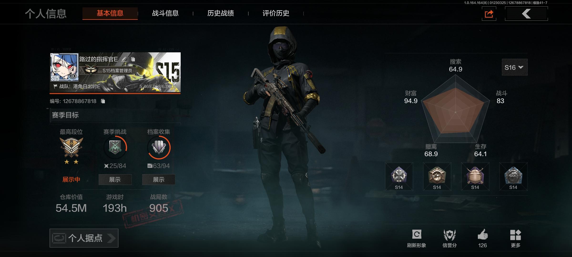 个人打法喜欢先收集信息再打贴脸 意识还行 会直架会排常规点位熟图 也可以当老鼠但不喜欢带雷 一般只带震和烟 不常穿甲 一般也是卡战备进 一个人太没意思 三角洲也玩 不压力人 心态挺好的
