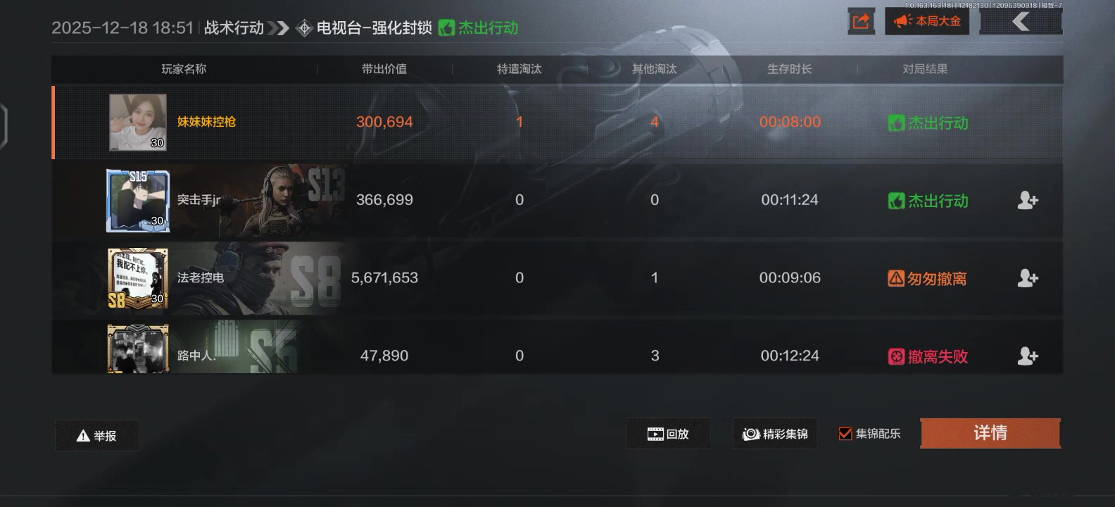 回归第二局,第一局去跑刀了,这把我是装备券进的封锁区,给我匹配了个传说队友我就感觉不对劲,进去几分钟队友就蒸发了。我搁地下室苟着,对面又给震又灌雷,最后进来一看五套191。拼尽全力一枪头毫发无损,直接被抬走了。