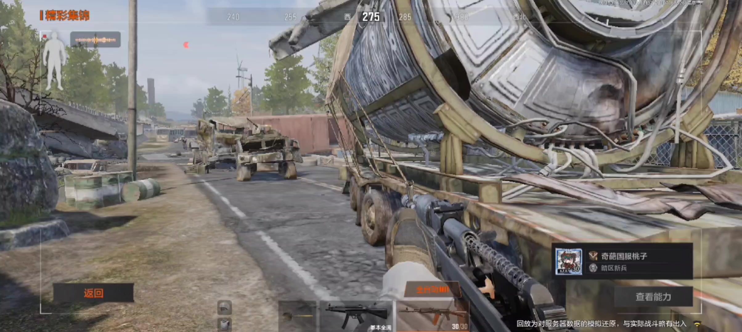 我自己都不知道他被我打死了,我就为了救队友朝那边瞎开了一梭子,我以为给对面打跑了,但是后来发现那里还有声纹(其实是一个人机)于是我躲在车后面和声纹主人博弈了一分多钟,他死活不过来给我弄的受不了了,一个大跳冲过去一梭子打死之后,嗯,怎么是人机?难道真人跑路了?等等,屋子旁边的这个真人包是什么鬼? 炸裂!