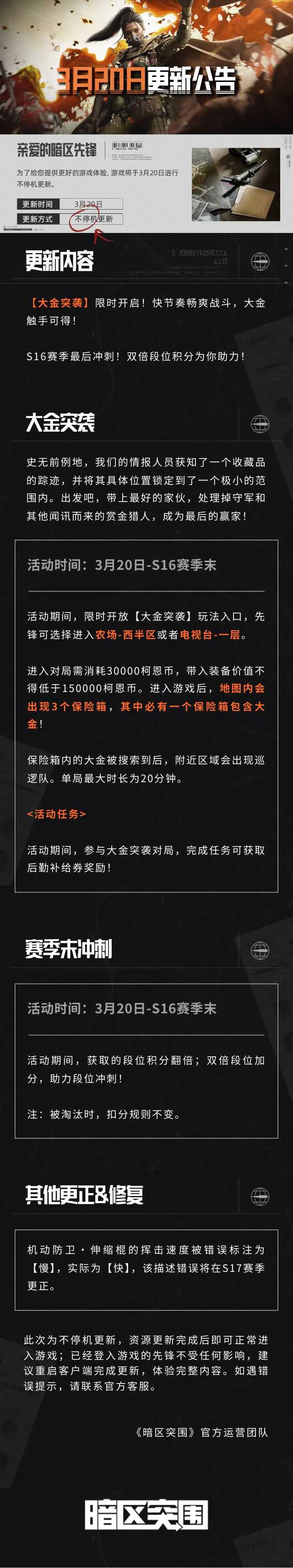 更新公告丨赛季冲刺蓄势待发!大金突袭即将来袭!