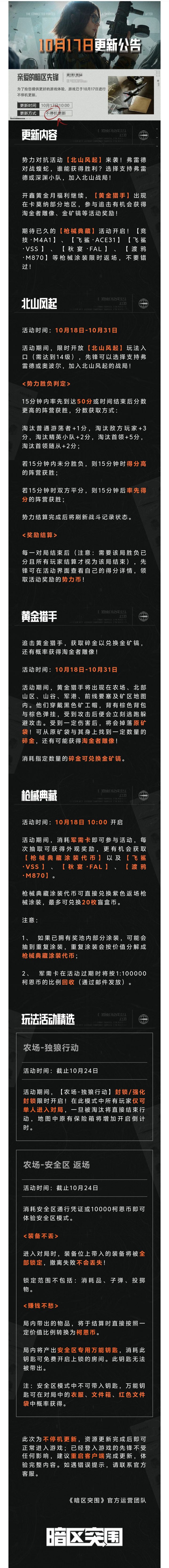 《暗区突围》全新枪械涂装【等高线 主题军需】即将于10月25日10:00开启,活动期间至多参与6次活动,每次参与活动消耗10,15,30,40,88,138军需卡即有机会获取【等高线・MPX】、【等高线·SCAR】等外观奖励,快来和老皮一起抢先看看吧!