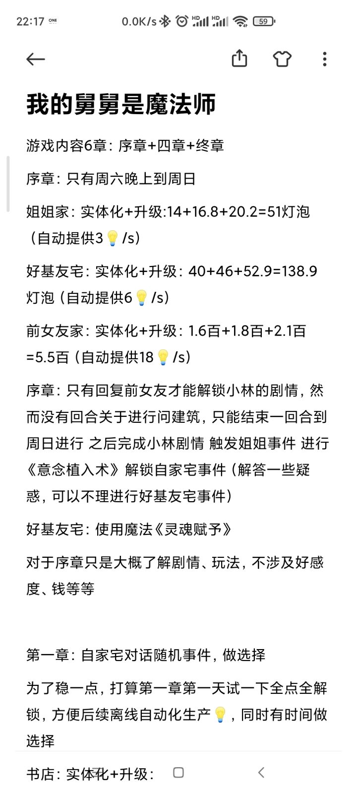 序章第一章:①我一开的时候选的是:最喜欢的是开心就好,然后整个就随便我玩quq第二开选了魔法,然后他就给我定了个目标quq弄弟弟或者炸鸡店老板的好感。②我觉得可能你一开始先不要升满级,就广撒网一样把建筑尽可能多的弄起来,人物点亮,因为很多事情是有收益的,完成这件事其他事说不定也可以完成了。③quq我觉得毕竟是前女友,而且人家也有男朋友,所以很多前女友找我帮忙什么的我都拒绝了quq然后感觉