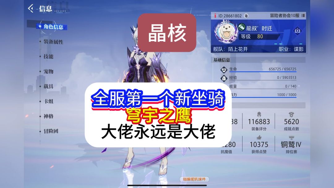 晶核全服第一个拿到新坐骑穹宇之鹰的大佬,相继又穿上了黑龙套