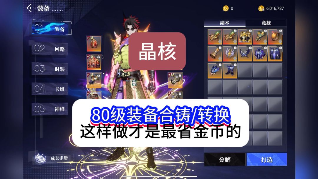 晶核80级防具合铸过程和散搭转换过程,这样做更省金币