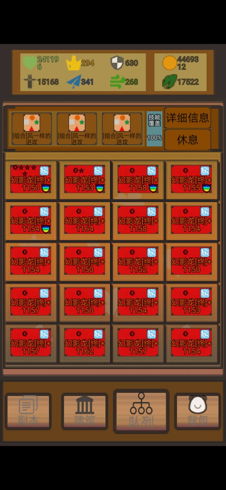 1.开始游戏以后,先制造宠物:建筑——宠物——制造。右上角有说明,我是各种族4个,然后7品质7转化率,剩下的感觉随便。因为品质影响宠物强度,转化率影响宠物进化后强度。剩下的什么进化概率之类的,相对来说爬塔全看运气,反正塔无限,而升级进化却有限。制造完成后需要等一段时间,等到当前吸引数不为0后,点击吸引数,就灰色那块,就能把宠物弄进背包。2.队列下掉全部宠物,背包选择宠物上阵,优先选攻击