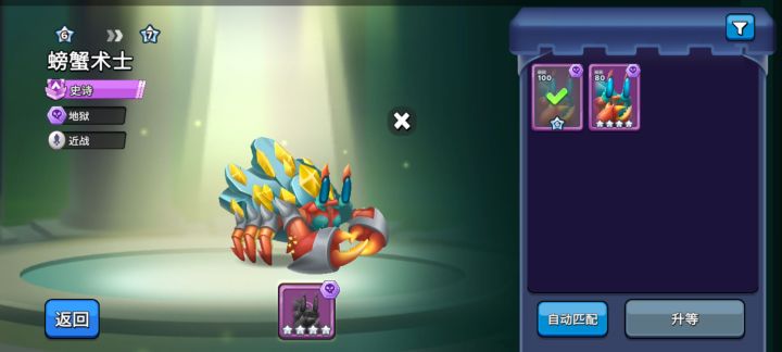 6阶以下紫色升阶需求1个本体四星材料7阶以上紫色升阶需求2个本体四星材料(还在实验中)4阶及6阶金色升阶需求1个本体四星材料5阶升阶需求1个本体四星及1个五星相同属性紫色材料(猜测7阶也一样可能要多一个紫)