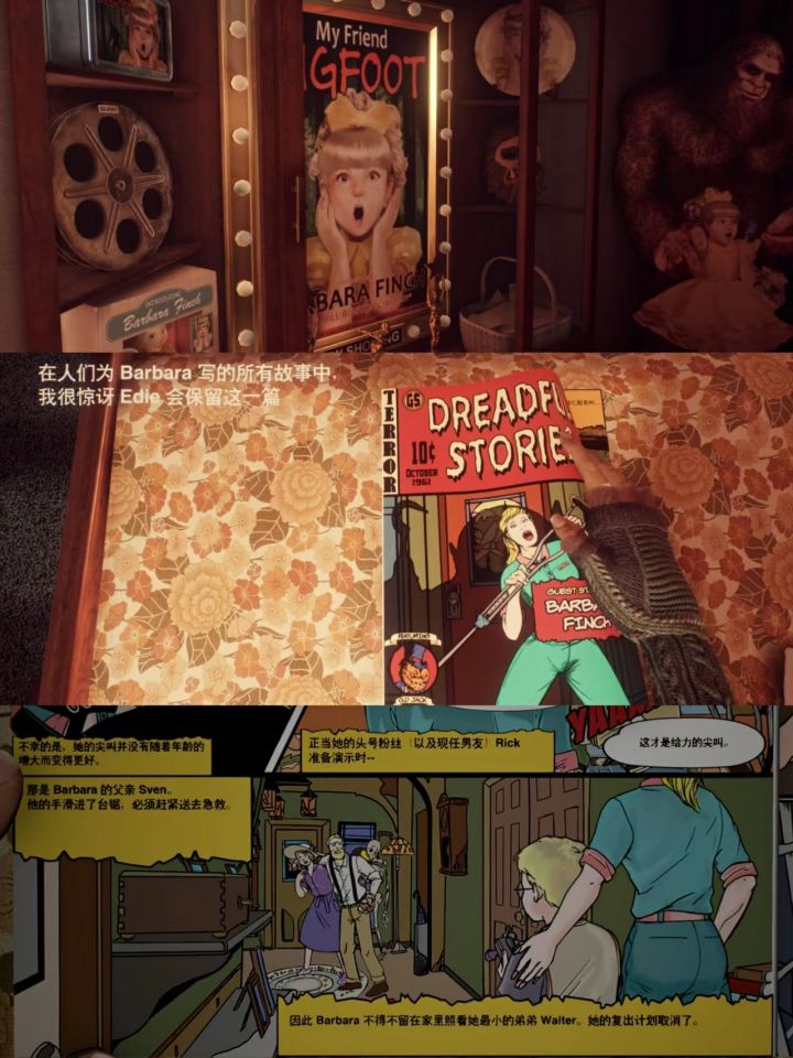 《What Remains of Edith Finch》是一系列诡异的故事,讲述了华盛顿州一个家族的种种怪谈。玩家扮演的 Edith 将进入 Finch 家族的大宅调查家族历史,试图弄明白为什么她是这个家族最后一个活着的人。