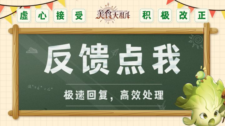 亲爱的美食家们:《美食大乱斗》公测期间,如果您在游戏过程中遇到BUG或任何问题,又或者您对游戏有更好的建议,有任何想要吐槽的,都可以在本贴评论,无需另起帖子和评分区评论哦,这样方便我们第一时间为大家解决问题,也促使我们不断优化游戏,谢谢各位美食家!【反馈格式】1、游戏昵称(游戏点击头像查看):2、手机品牌及型号:3、问题描述(可配截图或视频):为了大家有更好的游戏体验我们一直在努力!希