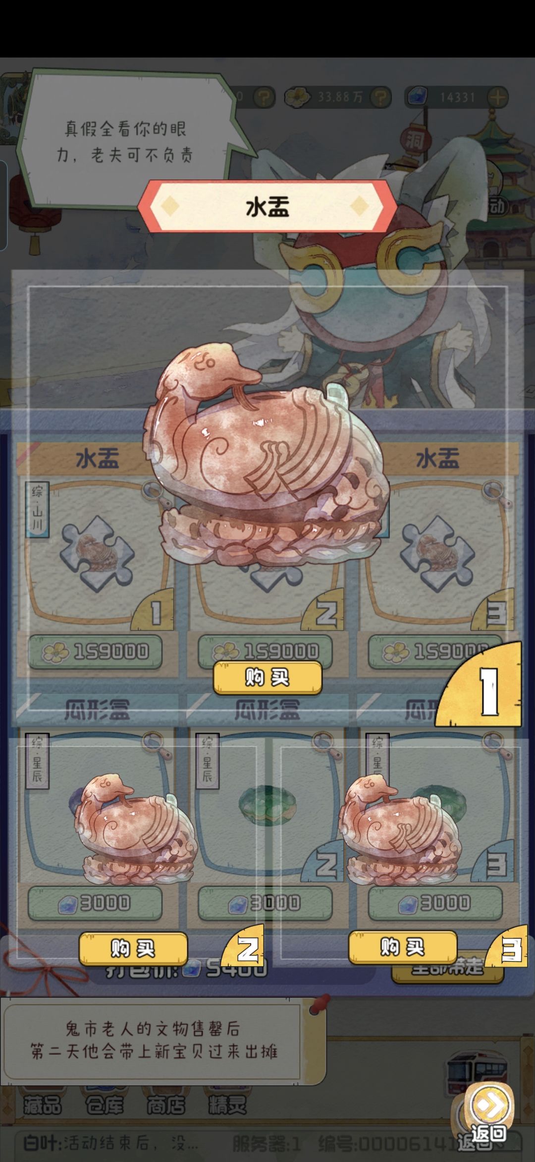 本期符合旧有原则。本期有一个天地。 蓝方瓶:真品左边有把手,且瓶口圆口更大 匜式尊:真品底部更加宽大,而且有斜条纹。#攻略 #新手攻略 #游戏攻略