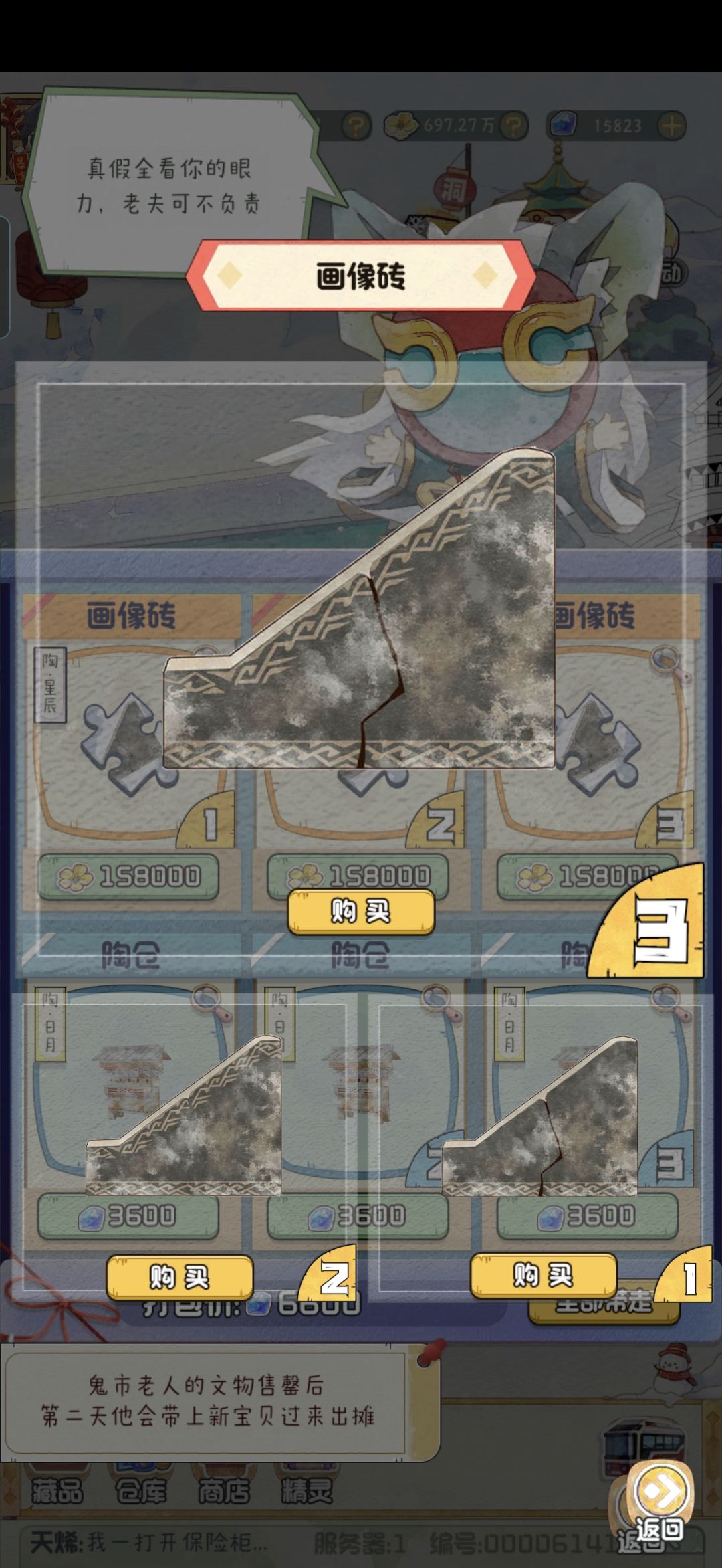 本期符合旧有原则 画像砖:真品斜边有花纹,中间有裂纹 陶仓:真品中间是红色,上方有五个方形窗口#攻略#新手攻略#游戏攻略