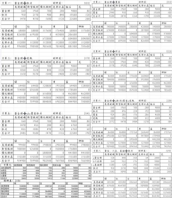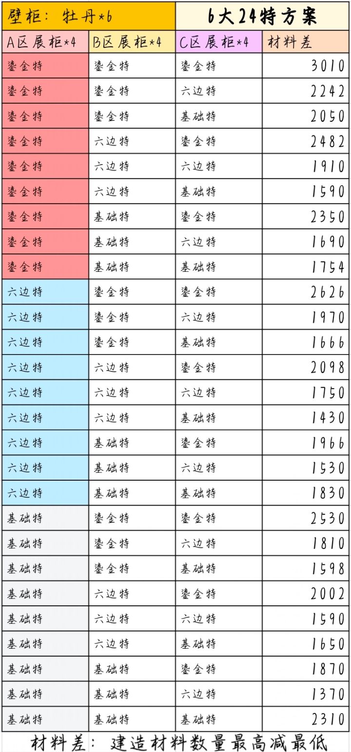 p1:八种方案围绕着6大24特/12大18特p2:6大24特看个人审美挑柜子,再考虑材料差(方便做成就任务)材料是指高清玻璃那些~#攻略