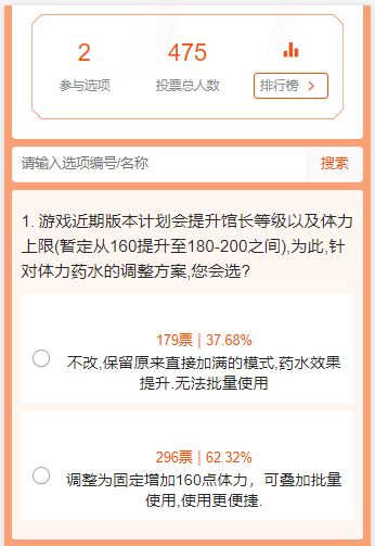 【投票结果公布】关于“体力药水”使用效果调整投票(已结束)