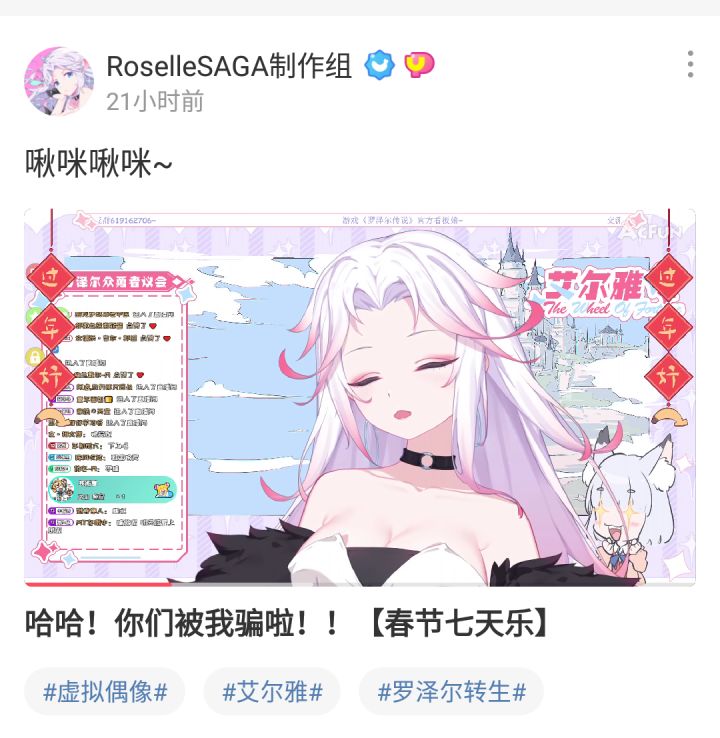女嘉宾的真实身份披露——是游戏角色v化的虚拟偶像! 直播主页地址https://www.acfun.cn/u/56175085