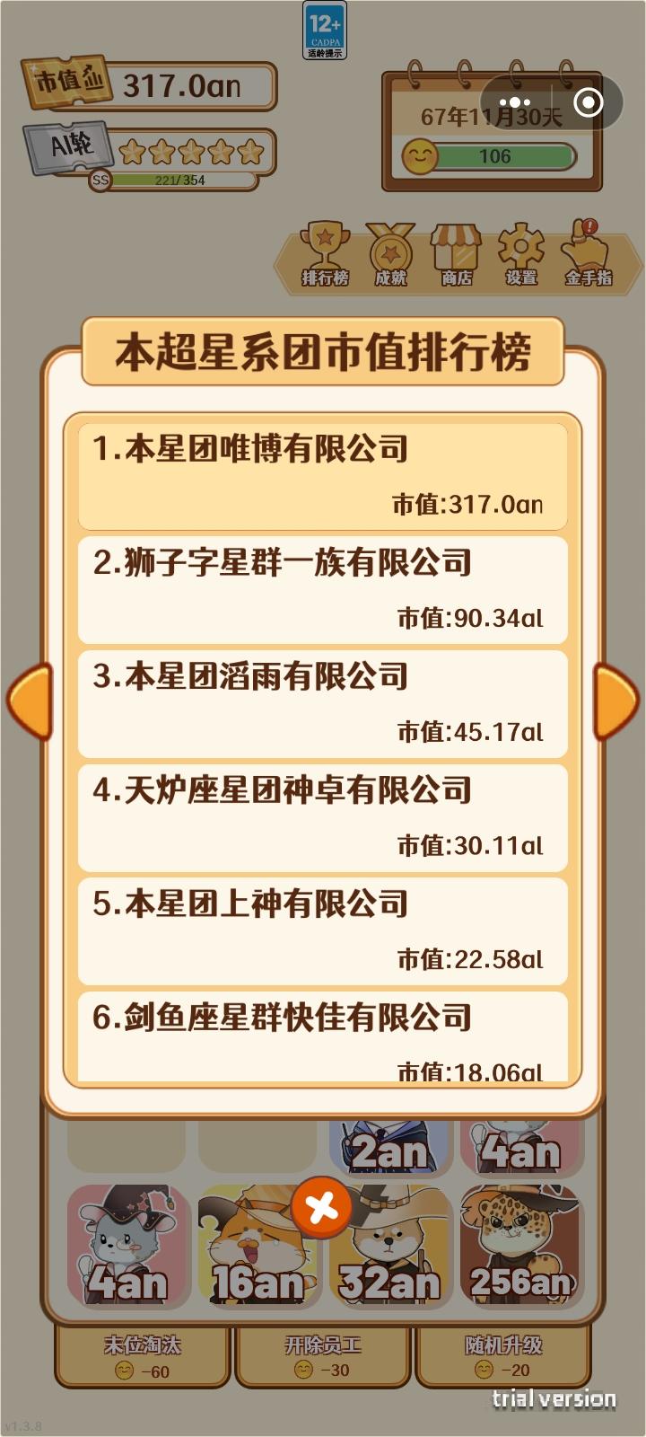 当投资值大于200后,不用脑子也能玩,游戏已经被玩坏了😜