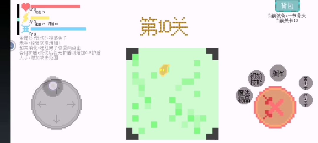 0.49预告1.新增:手残模式,新boss,魔法商人地形新东西,刷图可能会遇到强盗,要求你留下买路财(不然被圈在那个区块)只要你实力强大可以战胜2.改动:改变进入下一关的方式,某两个角色的被动主动,被动-备用护盾改为受击后增加0.5护盾,速度少量提升闪避,帧数小优化,优化长按技能或魔法物品按钮显示介绍,幽灵分裂两个改一个3.修复: