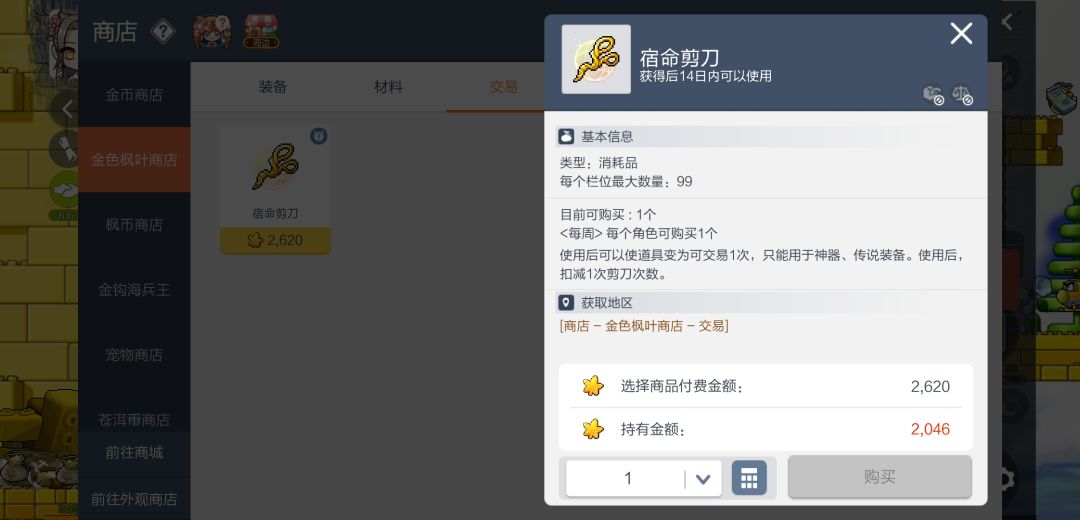 首先七天活动送一张传说卷,然后武陵道场25层打完给一张传说,有两张卷后就可以去制作防具了,最好看有大佬要什么防具的再去制作确保卖的出去,然后每天存的黄金枫叶币2600多个可以换一把宿命剪刀,用在绿色防具上就可以卖钱啦。买的时装单件有属性,套装也有属性,还是永久的,划算