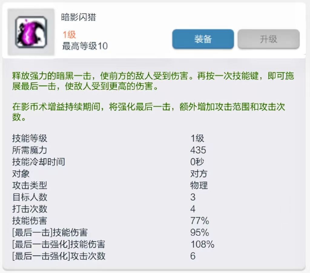 冒险岛职业技能搭配推荐——侠影(刀飞)