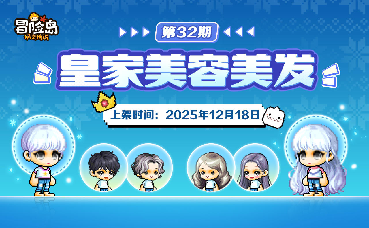 12月18日,第32期皇家美容美发即将上新!本期惊喜上架「夜湖碎影短发」「随性不羁发型」冒险岛酷guy登场!还有「雪茉莉发型」「优雅公主卷发型」甜美大小姐驾到。多款可爱活泼的脸型也融化了小岛的冬天~本期上线共24款男女发型脸型,多种风格随机组合各有各的精彩。助力冒险家们解锁暖冬新年季最佳搭配~#冒险岛手游 #冒险岛 #冒险岛枫之传说