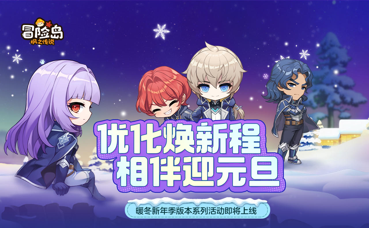 优化焕新程,相伴迎元旦!——暖冬新年季主题系列活动将于12月17日陆续开启!本期暖冬季版本更新超多主题活动,冬日氛围拉满,诚邀冒险家们与小喵一起在岛上跨年迎好运~「量子跃迁养成快线」、「暖冬小窝美梦补给站」、「马跃新程成长足迹」等主题活动福利多多,冒险家可以通过参与本期版本活动轻装上阵,减负提升~更多版本活动更新,请期待下一期预告内容!#冒险岛手游 #冒险岛 #冒险岛枫之传说