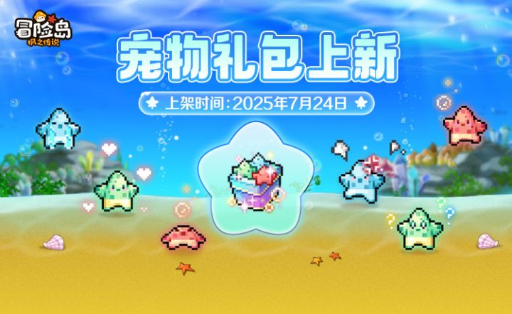 7月24日,宠物礼包上新啦!来自海底的虹彩小海星,别看它们个头小,带上一起冒险,也是最佳拍档哦~#冒险岛手游 #冒险岛 #冒险岛枫之传说