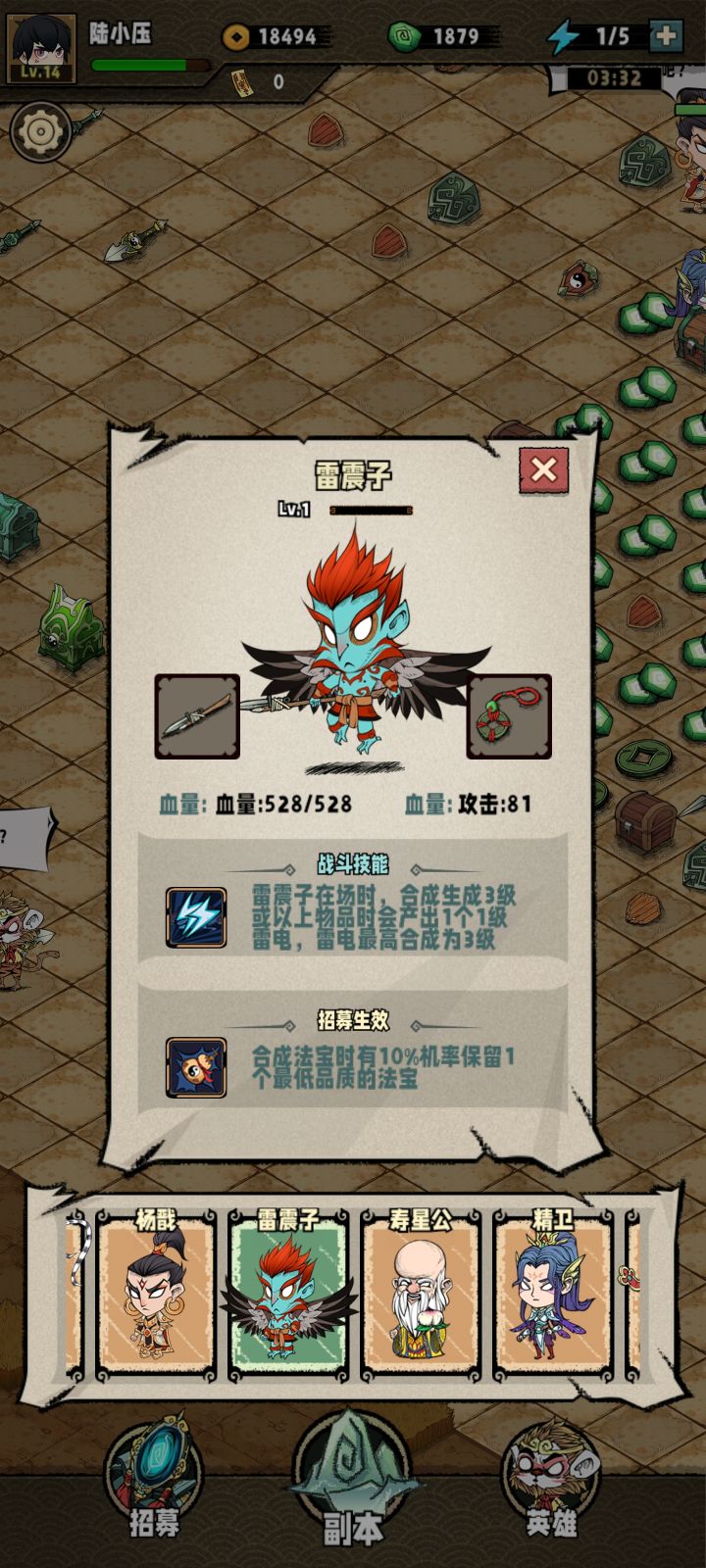 本人前期都是,陆压推图,直接推到凌霄宝殿,这也是固定刷本的第一站,日游神掉落雷震子,夜游神掉落悟空的金箍。