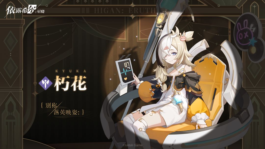 ✦朽花 | 落英映姿✦ 品质:SSR 职业:暗系战心 所属小队:不羁之心 在生死边界线上挣扎的少女。 或许这一切都像是上天的恶作剧。小小生命诞生之初,致命性的先天疾病亦形影相随。她对生命的渴求,家人的无比呵护,却依然没有抵挡住成年之际最最严重的一次发病。但幸好,在这个生死攸关的时刻,恰好遇到了在旅途中的怪医…… 而在重获新生后,她也选择了舍弃旧名,以新身份来加入剧团。 或许这就是她追求自己存在价值
