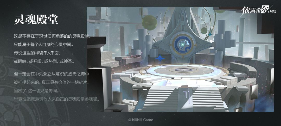 不存在于现世任何角落的的灵魂殿堂。只属于每个人自身的心灵空间。 传说这里的样貌千人千面,或阴暗、或开阔、或热烈、或神圣。 ——「你想要窥探别人的灵魂?这可是相当冒昧的事情。」