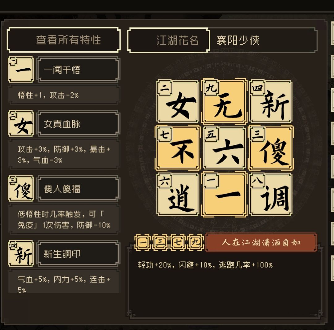 一、关于出生 再不参考二周目的情况下,若喜欢高自由度和特殊流派可选择落魄小乞丐;想走江湖线高道德流派可选少室山孤儿;追求邪派或隐藏门派专属武学可选天摩小尼。我个人建议一周目推荐放牛娃拿左右穿花(双手互搏),后面周目继承这玩意就能随意按自己喜欢的来了。 二、初期武器和功法选择 在进入游戏后,轻功大于31点,可以在古井得到一把剑,前期搭配系统赠送的剑法。可以过渡一段时间!详情可以参考我的图例。 三、大