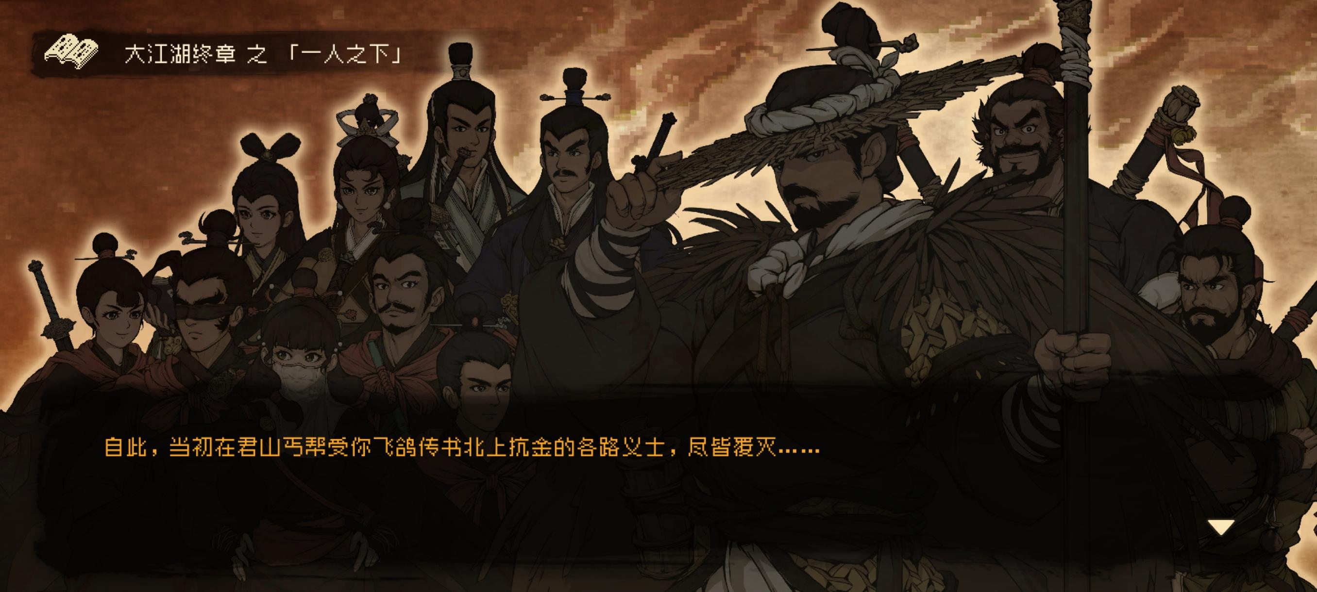 这个结局后面还有个图我没截上,说:宋朝举朝贪生怕死,前线节节败退,然后因为一个单骑文官自愿奔赴前线,所以本来被金王亲率的金朝铁骑打的丢盔弃甲的宋军突然觉得“哇,虽然皇帝都放弃我们了,但原来还有宋文官和我们同在,我们无敌了!”(重要的是他这个位卑权小的文官竟然能在自己私自出行且名不见经传的情况下,把已经连战连败的士气低落、丢盔弃甲宋军士兵给重新聚集起来。注意:这里说他是私自出行,也就是说没有任