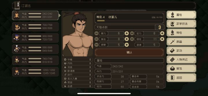 Tap系统一直删我贴,这是最后一次发了,再删就不发了,太恶心人了!!!!这游戏去年通关就没再怎么玩了,最近看了下tap上发售了这款游戏新玩家也多了起来,今天重新搞了下存档分享一下。这款游戏让人诟病的问题比较多,最让我难以忍受的是道德问题,不管是角色入队还是各种功法都会卡你道德,这对有收集强迫症的玩家非常不友好!!!所以我下面分享的存档都会包含用不完的素书(+1道德)、世世恨生丸(-1道德)以及