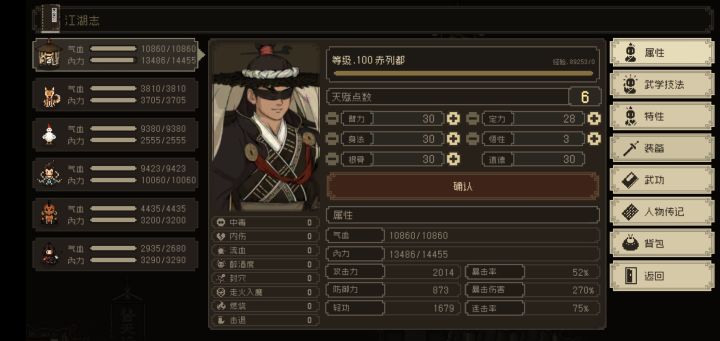 1,开局选择特性「带头大哥」「江湖黑手」背后攻击必暴,路线选择臂力拳法2,开局佛像后面铜钱,拿功德箱铜钱,三斗坪买铲子,小舔治疗秘籍,襄阳击败吴金发黑狗掏裆秘籍,都给大黄狗修炼满3,5级左右,襄阳城北抓通缉犯「胡鞑子」,装备胡鞑子特性「玲珑异眼」,解锁刷矿石马上鉴定的功能4,黑风寨,三斗坪刷矿,刷到+3的武器防具,解决初期属性不足的问题5,三斗坪击杀白无常,挖坟,拿太祖长拳,遇到打不过的敌