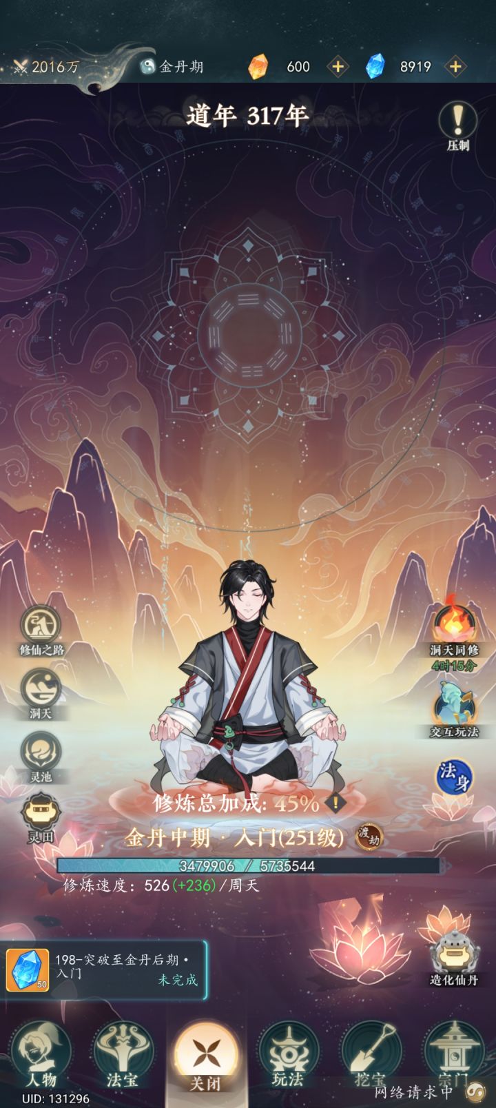 首页是修行旁边来个铸造室再来个自己的洞窟门派之类的再来个关卡排行榜基本就没了。(个人最不喜欢资源那种,消耗的快还得算着招纳人数)这一段没有用仅为本人碎碎念