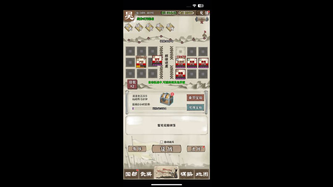 站位前排孙策,高顺。中排大乔(和孙策缘分增加血量),后排孙权,甘宁(甘宁控制型),前期没拿到太史慈或者诸葛亮可以用甘宁代替。神器搭配高顺(舍身,遗策)。孙策(滋养,遗策)。甘宁(碎击,七杀)。孙权(墨攻,碎击)。大乔(牺牲)。角色等级孙策>高顺>孙权>甘宁