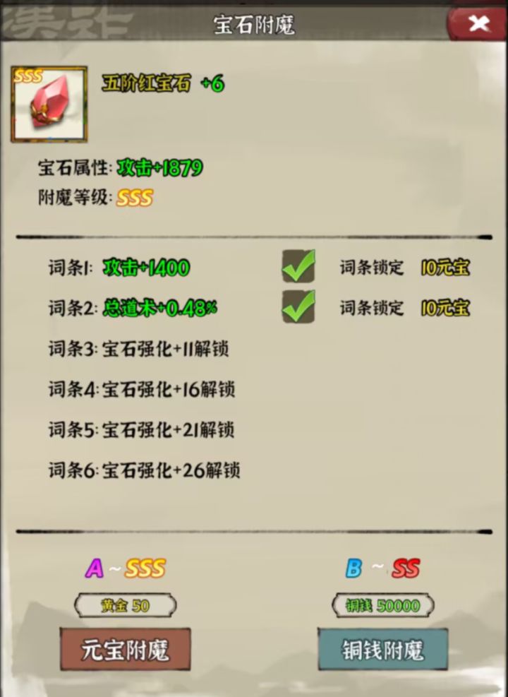 一 新增宝石系统 1 君主们可通过宝盒系统快速获得宝石,或通过功勋兑换,以及国战宝箱概率获得宝石 2 宝石可增加大量的基础属性,通过强化提升属性,可通过附魔获得更多稀有属性二 优化 1 国战任务优化:优化为23个即可完成 2 国战行走粮草消耗降低 3 游戏数值极限优化 格挡强度上限降低80%,即最大抵挡80%的伤害 暴击强度上限提升至300% 反击强度上限提升至300% 灵爆效