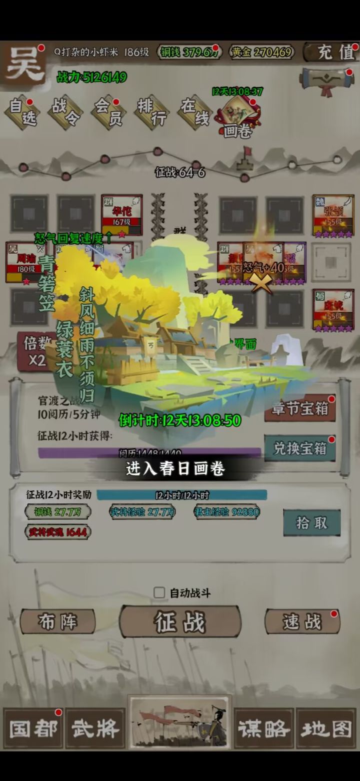 开启国战条件,先把资源城全打完(62个,同等军令),如图:每个城市都有资源,都城100W,宴请9,小城池30W,宴请2;NPC也是有等级的不是一开始就能完成目标,需要提升自己整体实力,相对征战和南蛮简单。 军队:顾名思义布置自己的武将和阵型,应该是1个阵型只能用在一队上,国家等级是国战的国家等级和主城等级无关。 科技:功勋从出征国战获取,威望还是主城打架获取,科技书由任务获取,或者黄金购