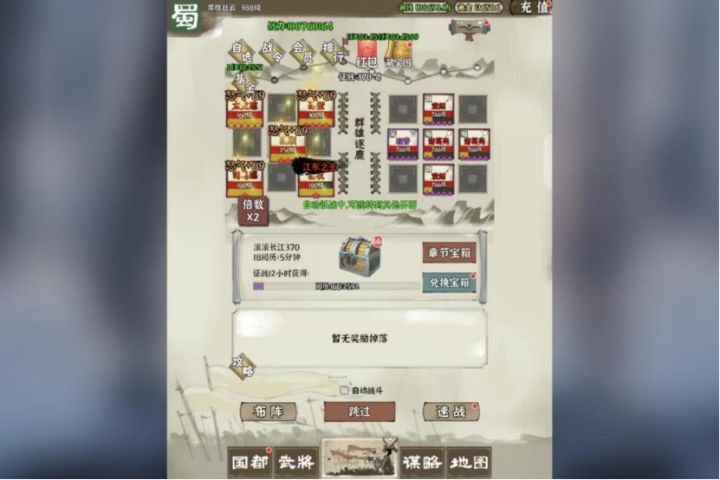 时隔1年5个月,终于完成推图1000关的,阵容还是有很多不足和短板,比如红卡练度太低,很多关卡也都是很极限或者靠着连点器挂机过的,分享一些前人大佬的经验:1、善用凤雏的复活技能,可以相当于单回合孙策单抗一路;2、邓艾和烛龙叠加可以让华佗被动回血变成倒扣血,金邓艾加双烛龙更明显;3、征战四方的装备要早点推,可以越级提升装备,前期阵容借用司马懿的技能可以提高阵容存活空间,标准是可以抗一次攻击,不过差不