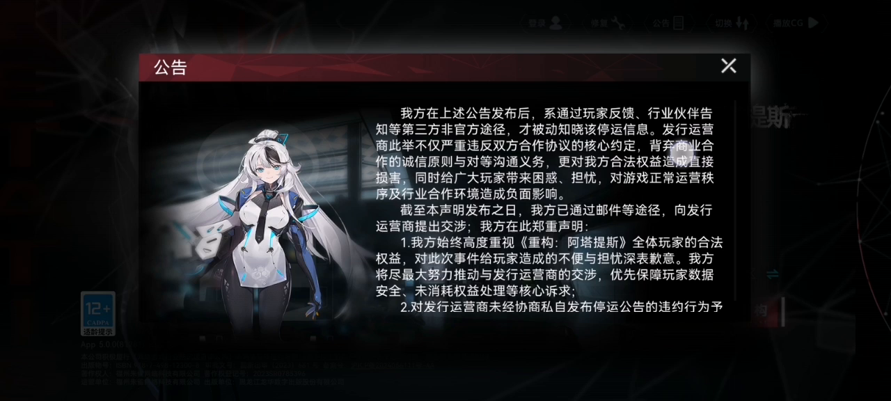 我好不容易刚找到的非人替代品,当时也就是退游了一个月,回来就关了,虽然这种类型的游戏都差不多#重构阿塔提斯 晚安#重构阿塔提斯公测
