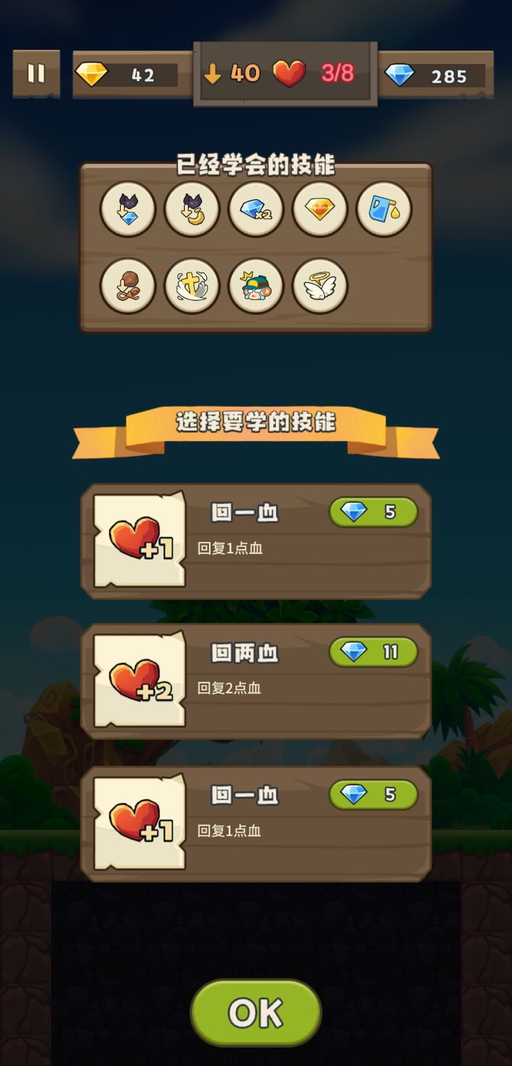 最高32层,实在是不想玩了主要还是因为点了下落速度,下落速度真的是大幅增加了游戏难度,满级之后完全控制不住游戏还是有点小意思的,就是太过于单调玩玩还行,玩过20来关就没一点挑战性了,只要不浪死不掉的,蓝钻也用不完建议增加每日挑战模式,每日给固定技能,挑战下落高度,多增加些玩法