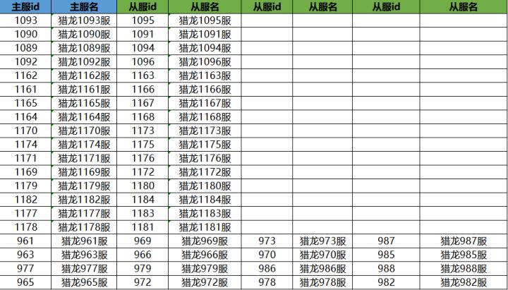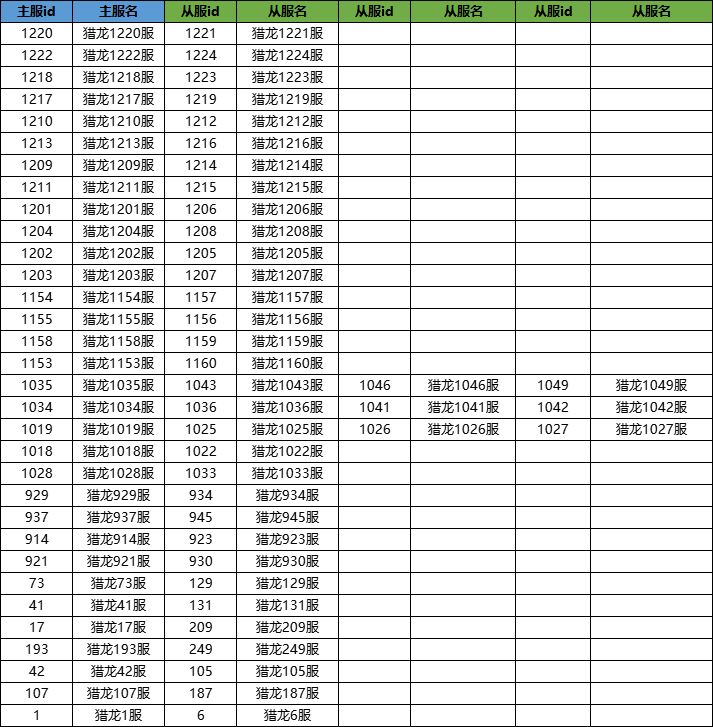 亲爱的各位猎人:游戏合服名单新鲜出炉, 8月10日合服名单如下,猎人们注意查收哦~合服名单温馨提示:1.以上公告内容仅供参考,一切以游戏内实际数据为准。2.公告最终解释权归《狩猎使命》运营团队所有。