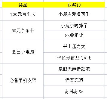 【获奖名单】活动到这里就结束啦,各位获奖的猎人们发送【账户截图】至slsmxzs@163.com,请猎人们将获奖信息发送至此邮箱领奖哦~获得实物奖励【夏日小电扇/必备手机支架】的猎人们还需要附上收获信息【收货人、联系电话、收货地址】哦~没有获得奖品的猎人也不要气馁呢,接下来还会有各种各样的精彩活动,请大家持续关注我们的社区,期待下次再会呀~-------------------------