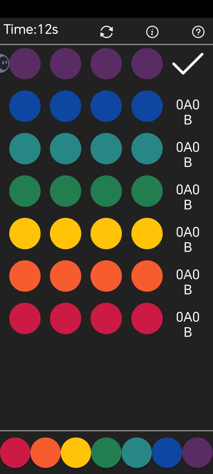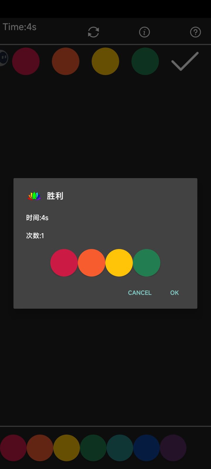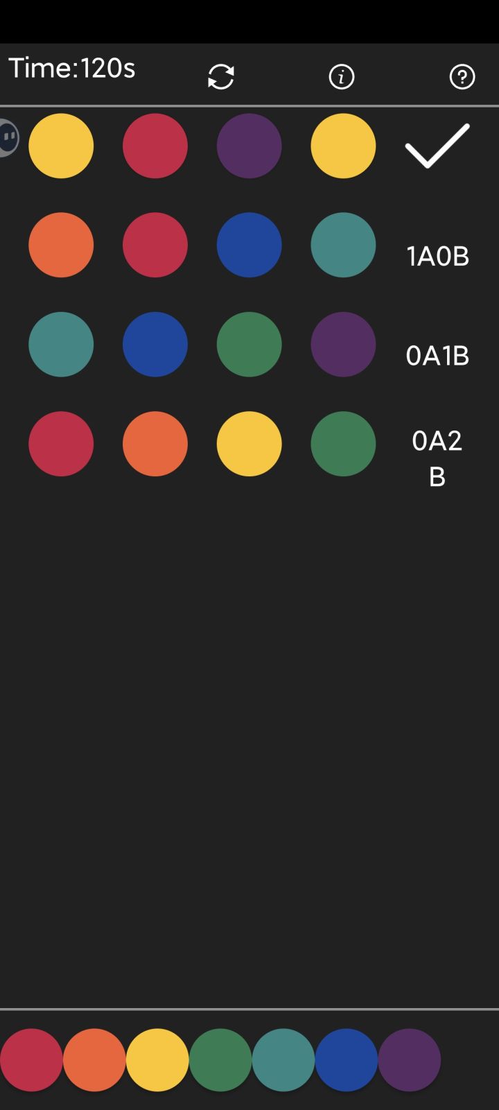 首先是测试出三个颜色位置正确,然后用同样的三个颜色,却显示只有两个颜色位置正确,相比于谜底发现:颜色重复且位置正确的数量,它不随颜色重复颜色只显示一次,而是有几次显示几次。
