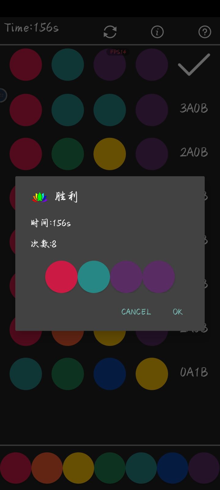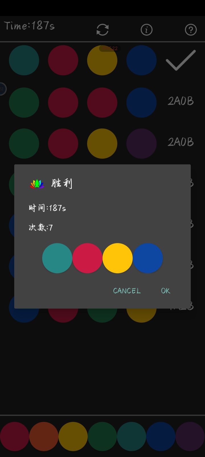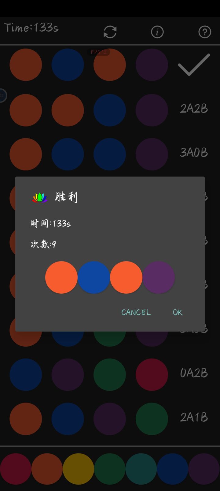 我这一局,本来第一步我就推算出其余3种颜色是对的,结果没对上