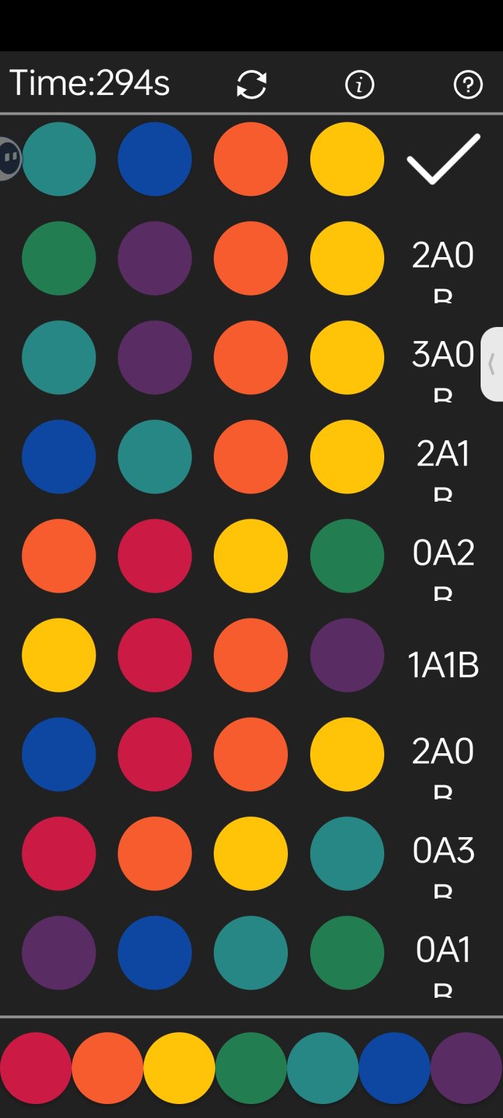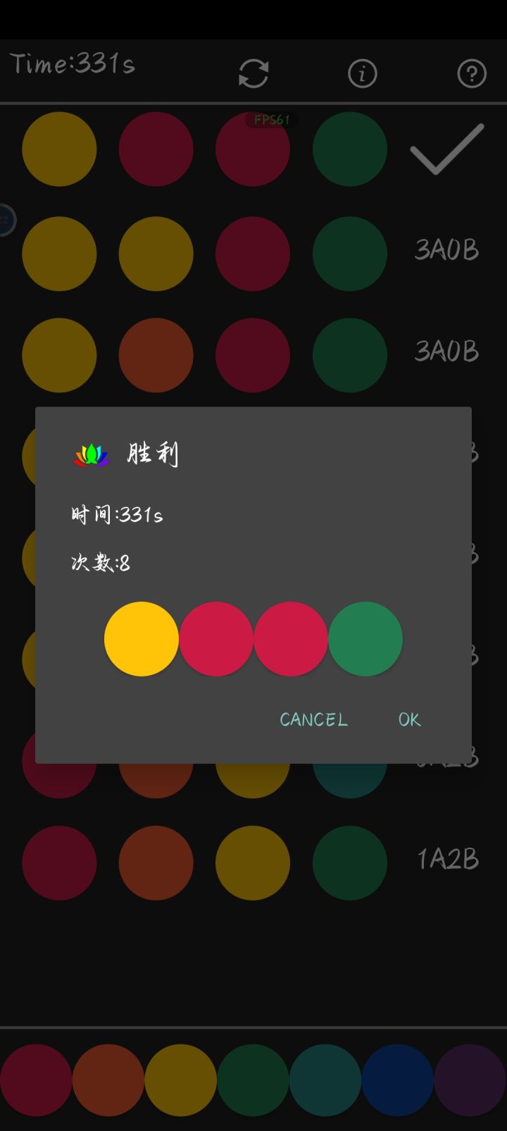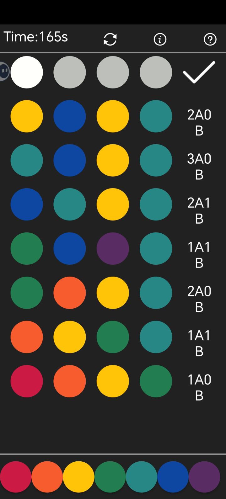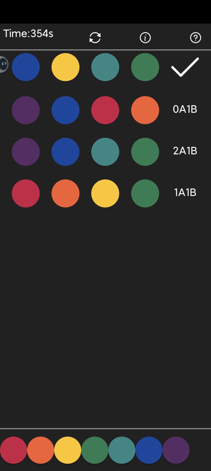 我这一局,本来第一步我就推算出其余3种颜色是对的,结果没对上
