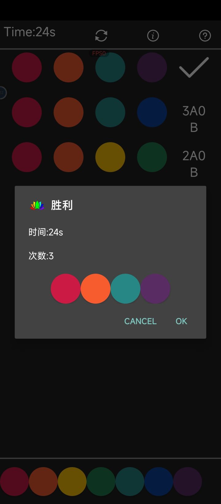 首先是测试出三个颜色位置正确,然后用同样的三个颜色,却显示只有两个颜色位置正确,相比于谜底发现:颜色重复且位置正确的数量,它不随颜色重复颜色只显示一次,而是有几次显示几次。