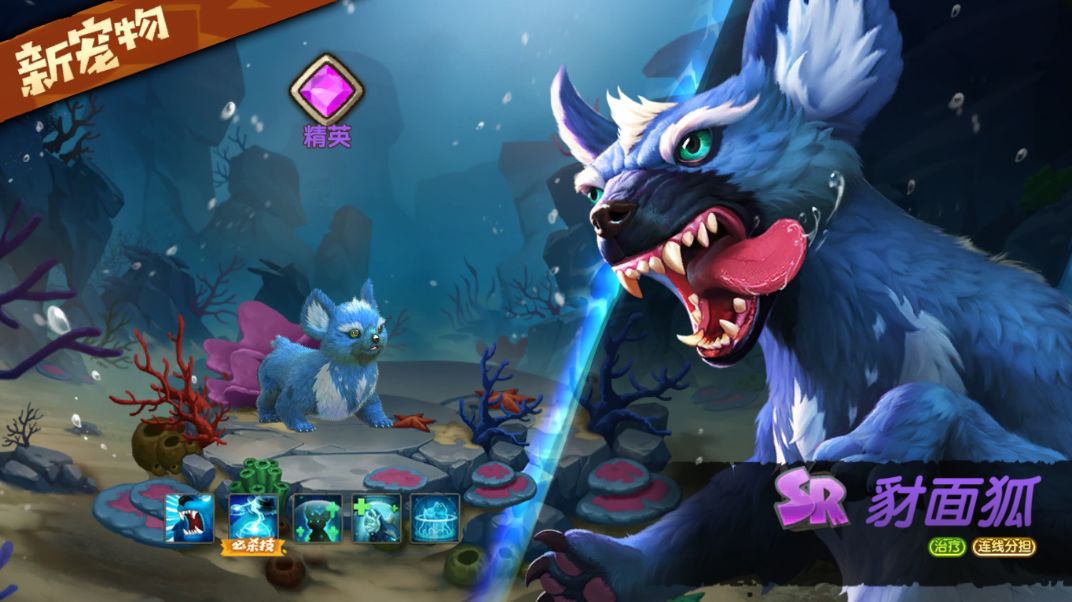 豺非常擅长以多欺少,他们的敌人往往会由于消耗战招架不力而被分而食之。但是当豺群在挑战落单的狮子时,往往会因为狮子强大的攻击力而失去战力,被破坏阵型最后败下阵来。这是集体智慧在绝对强点面前的溃败,但是当豺的集群搭配狐狸的智慧!全新超强奶妈闪亮登场! 铁索连环,众生平等!豺面狐技能详解 豺面狐是全新的水属性治疗宠物,专属标签——“连线分摊”。别看豺面狐自己小小的身躯,却拥有能够团结大家的力量! 专属技