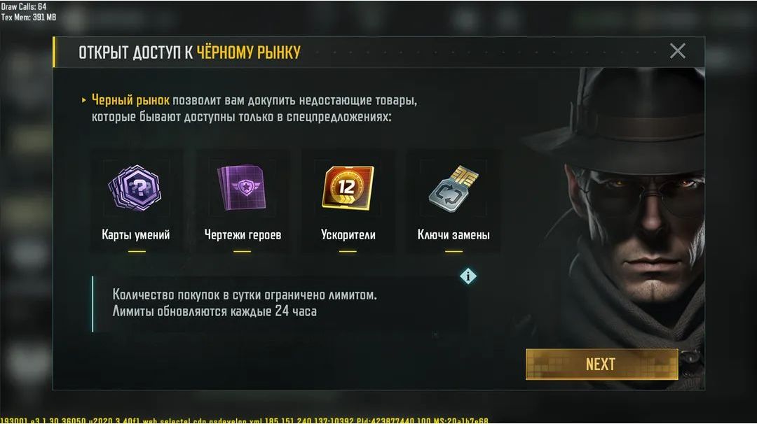 ☠黑市☠ 想要完成指挥官技能树但技能卡不够?或者您需要很多积分来开始升级,但缺少加速服务?有时会发生这样的情况:您想升级英雄职业,但英雄蓝图从商店中消失了... 💰但是,现在这种情况将不会发生!黑市将会为你提供帮助!黑市是商店中的一个特殊区域,您可以在这里购买所需资源,以享受更舒适的游戏。您可以在军衔为6级的位置解锁该市场。不要忘记每天去黑市购买必要的技能卡、蓝图或加速卡。 💶黑市提供: ·技能卡