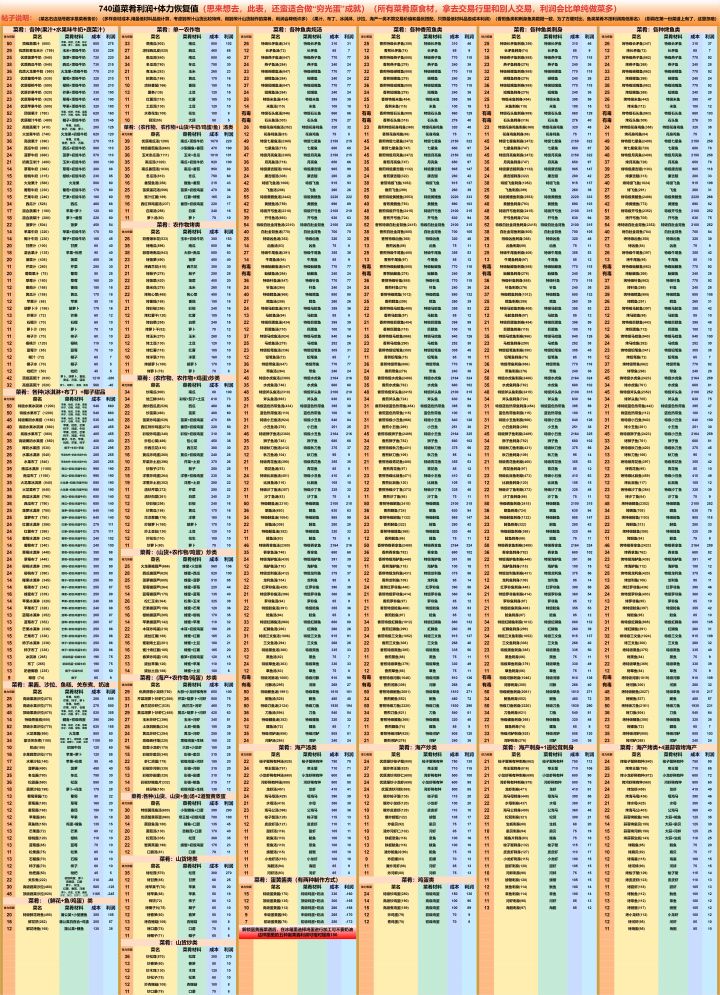 厨房全菜谱攻略—含厨具,食材,体力,价格